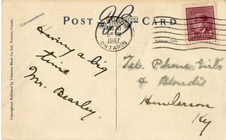 Notes: Postmarked 1947; Addressed to the: " Tel. Phone Girls & Blondie", from Mr. Beasley |