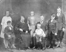 Notes: c. 1924; left to right: Evelyn Merlo, Roy Merlo, Theresa Merlo, Ann Merlo, Louis Merlo Jr., Louis A. Merlo, William Merlo, and Victor Merlo; Louis A. Merlo was the founder of Merlo, Merlo, And Ray, a Windsor construction company. With the exception of Theresa and Victor, all the family worked for the company; no .tiff file available |
