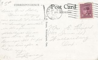 Notes: Postmarked 1947; addressed to Mrs. Ethel Rupert; the school operated from 1922 to 1972; it is now the Wheatley And District Friendship Club; it is located at 171 Erie Street North, at the intersection with Lougheed Drive |