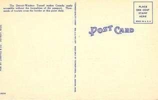Notes: c. 1940; "The Detroit-Windsor Tunnel makes Canada easily accessible without the formalities of a passport. Thousands of tourists cross the border at this point daily." |