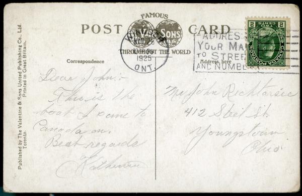 Notes: Postmarked 1925; addressed to Mr. John Richtarsie |