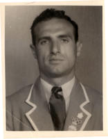 Notes: Chuck Chapman wearing the 1936 Olympic Jacket; photograph was taken August 5th, 1936 in Berlin, at Foto-Fix, Bin. C2, Konigstr. 6a; he was a member of the Canadian basketball team that won the silver medal at the Berlin Games |