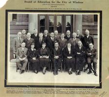 Notes: Photographer: S. C. Lloyd, Walkerville, Ont.; "inserts: A. F. Fuerth, S. S. Representative; Rev. H. E. Merifield, B.A., L.Th; Rev. H. R. Nobles, B.A., B.D.; first row, left to right: P. P. McCallum, C.L.U.; Mrs. C. D. Farquharson, B.A.; Mrs. L. A. Killen; H. D. Taylor, B.A., M.D. (Chairman); Mrs. Harry Weller; F. W. Begley; A. J. Jacques, B.Sc., M.D., Lic. G.M.C.; second row, left to right: J. E. Benson, M.A. (Inspector of Public Schools; T. R. Noble, B.C.S. (Business Administrator); W. E. Atkinson; G. H. Fuller; E. W. Morris; A. L. Mason; Back row, left to right: G. S. Campbell, B.A. (Principal of Kennedy Collegiate Institute); G. S. Adams (Supt. of Maintenance); Robt. Reid (Asst. Sec.-Treas.); L. Hyttenrauch, M.D. (School Medical Officer); E. T. Howe (School Attendance Officer); L. Wheelton, B.A. (Principal of Patterson Collegiate Institute); C. E. Biehn, D.D.S. (School Dental Officer) |
