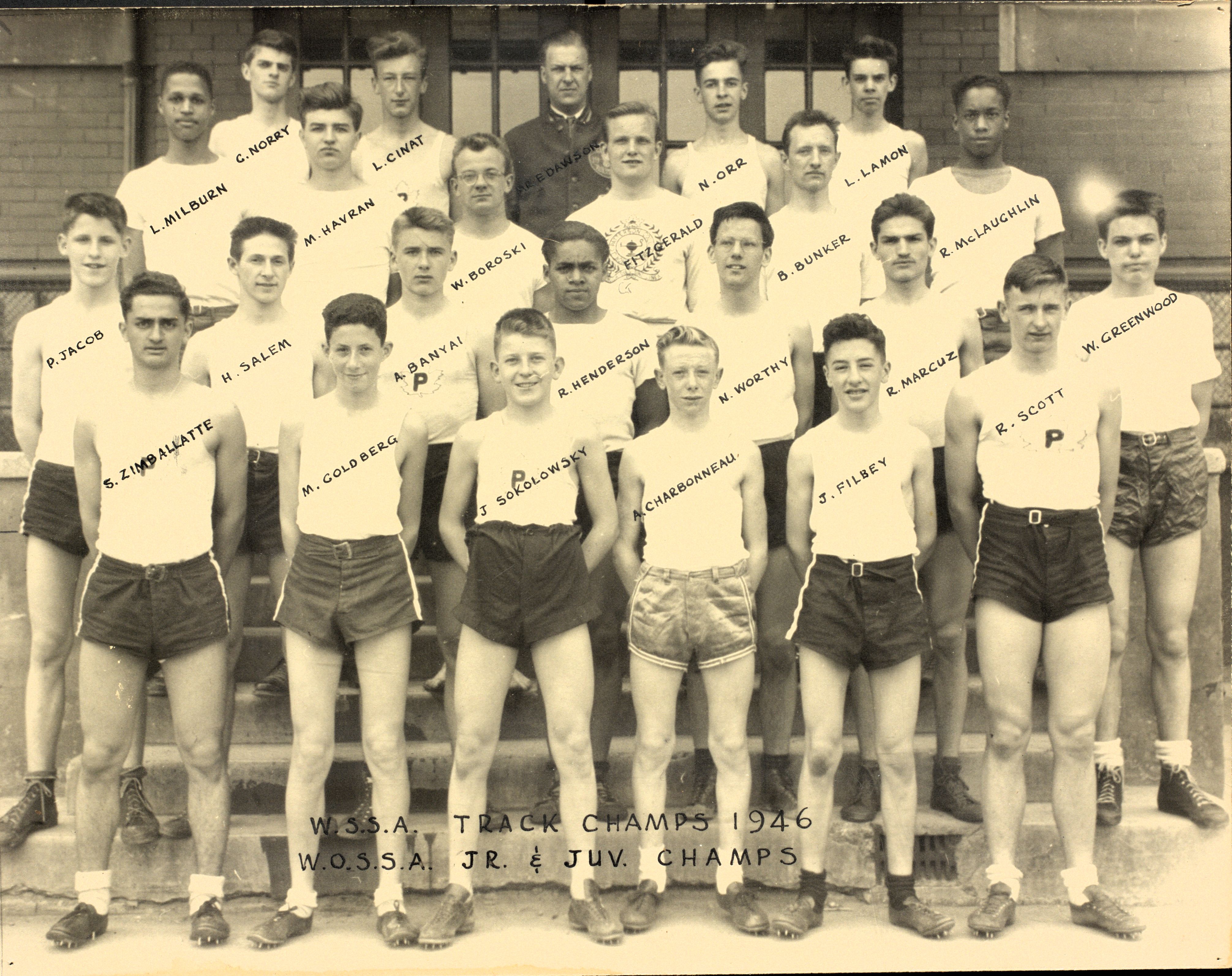 Subject(s): Patterson, J. C. Collegiate Institute (Windsor) Track And Field Schools Norry, C. Cinat, L. Dawson, J. E. Orr, N. Lamon, L. Milburn, L. Havran, M. Boroski, W. Bunker, B. McLaughlin, Ronald Jacob, P. Salem, H. Banyai, A. Henderson, R. Worthy, N. Marcuz, R. Greenwood, William Zimbalatte, S. Goldberg, M. Sokolowsky, J. Charbonneau, A. Filbey, J. Scott, R. FitzGerald, G. |