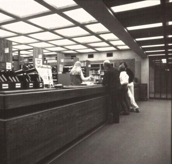 Notes: ca. 1972; photo from contact sheet; looking southeast; the reserve reading room was located on the north side of the ground floor (basement) of the main building of the library. |